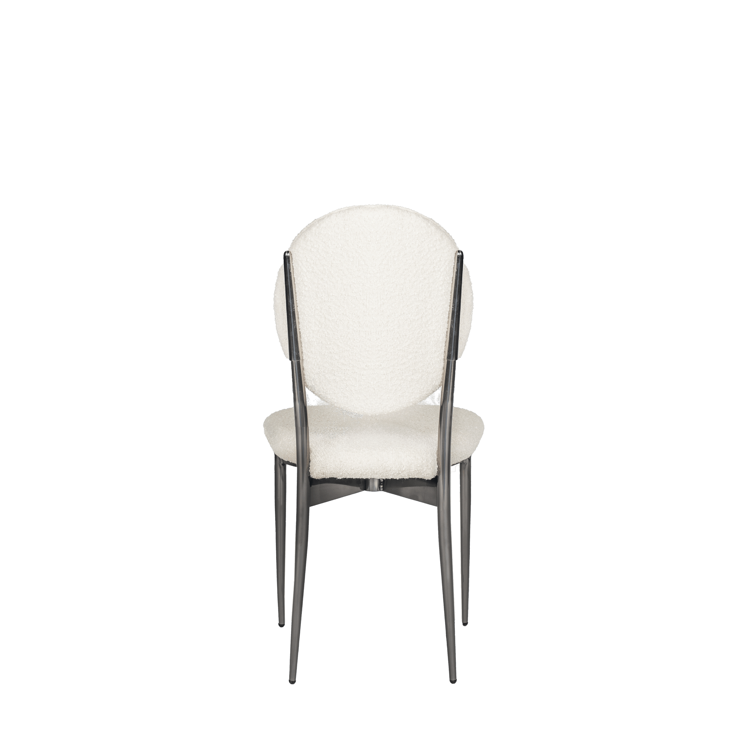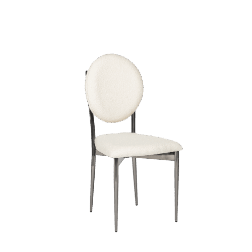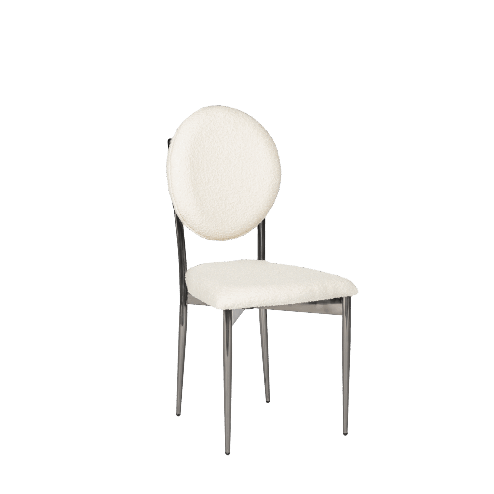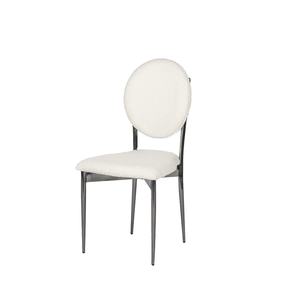 Hollywood Dining Chair, White Boucle and Blackened Chrome Frame.