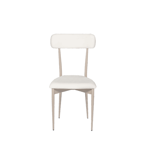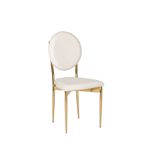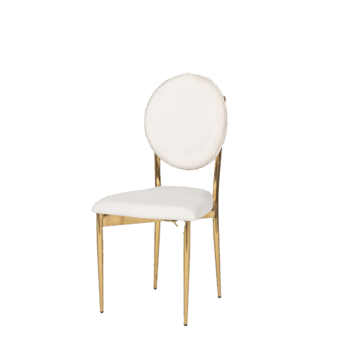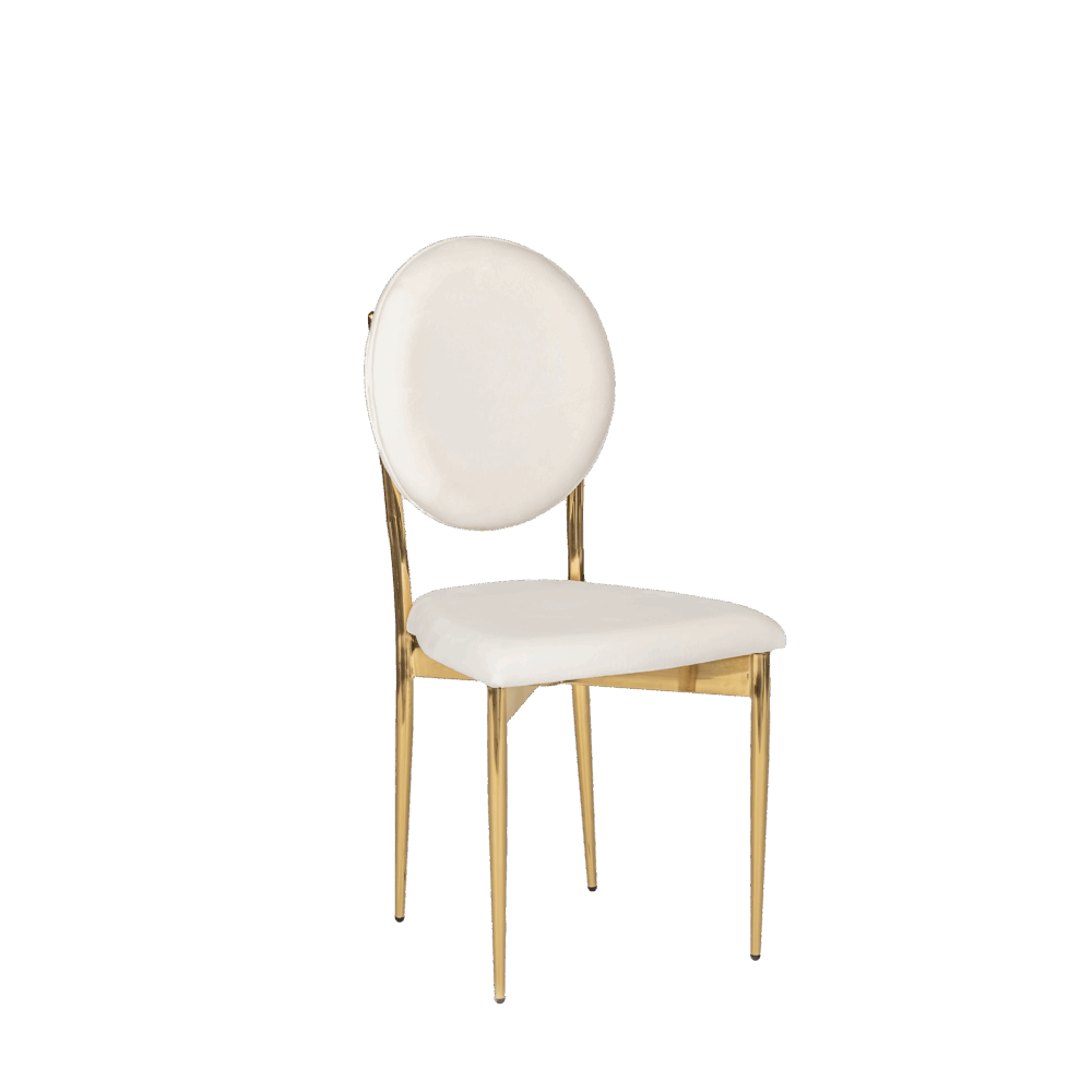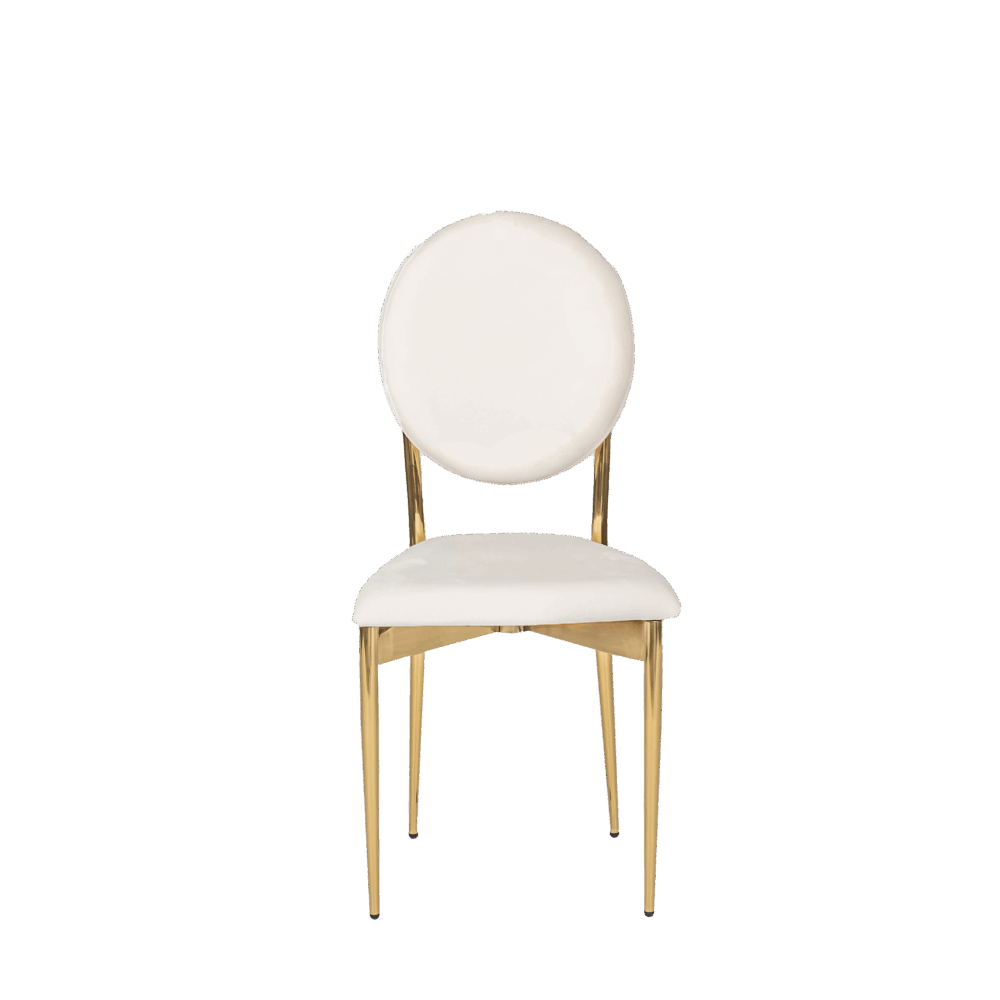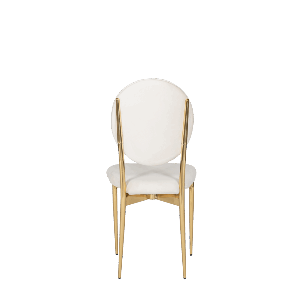 Hayworth Dining Chair with Medallion Back, White Velvet Upholstery and Gold Metallic Frame.