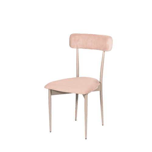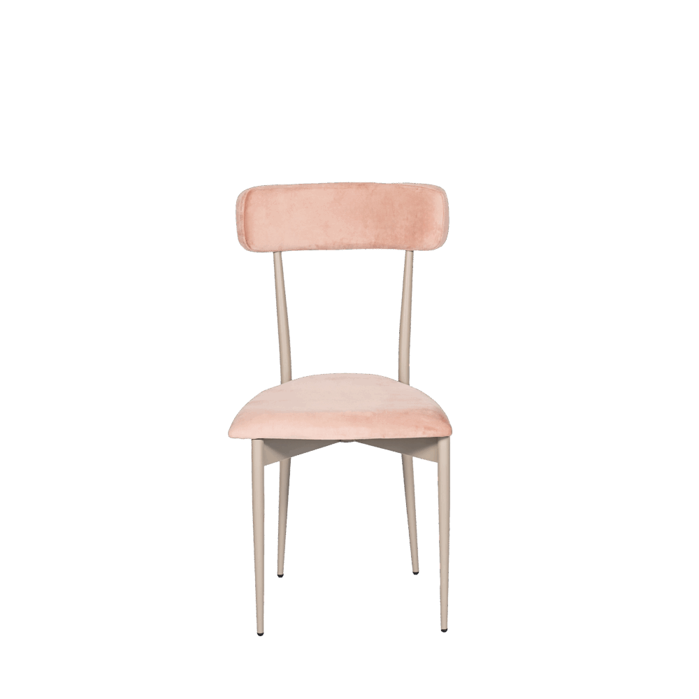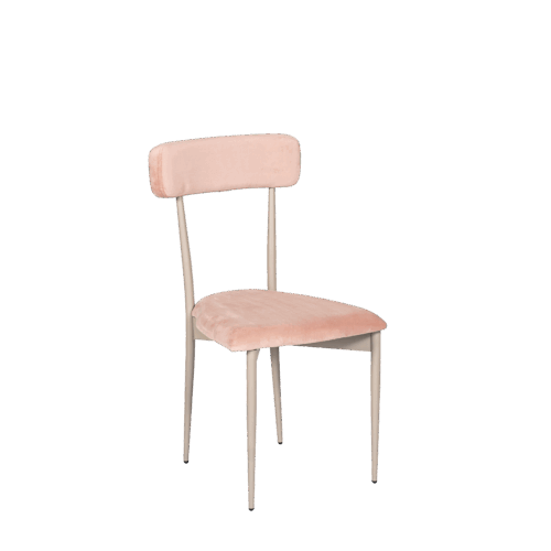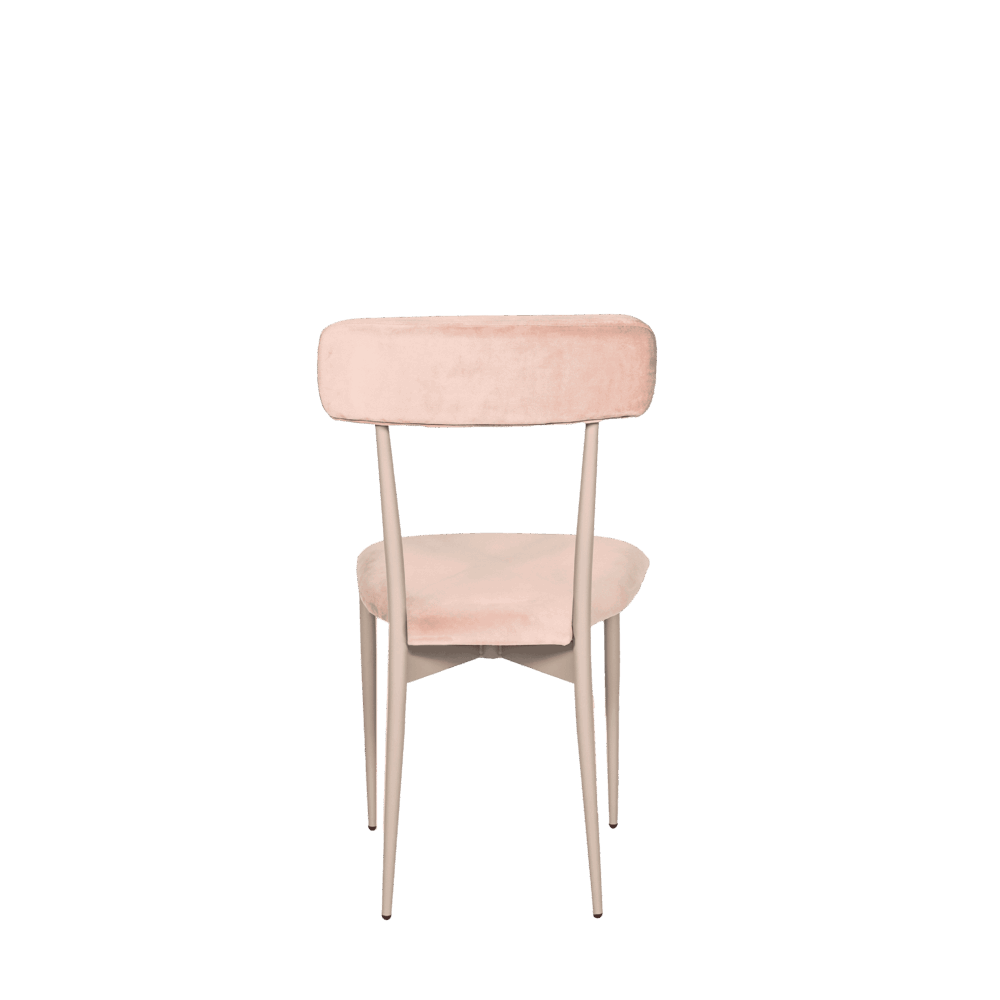 Hayworth Dining Chair with Rectangular Back, Blush Velvet Upholstery and Pewter Frame.