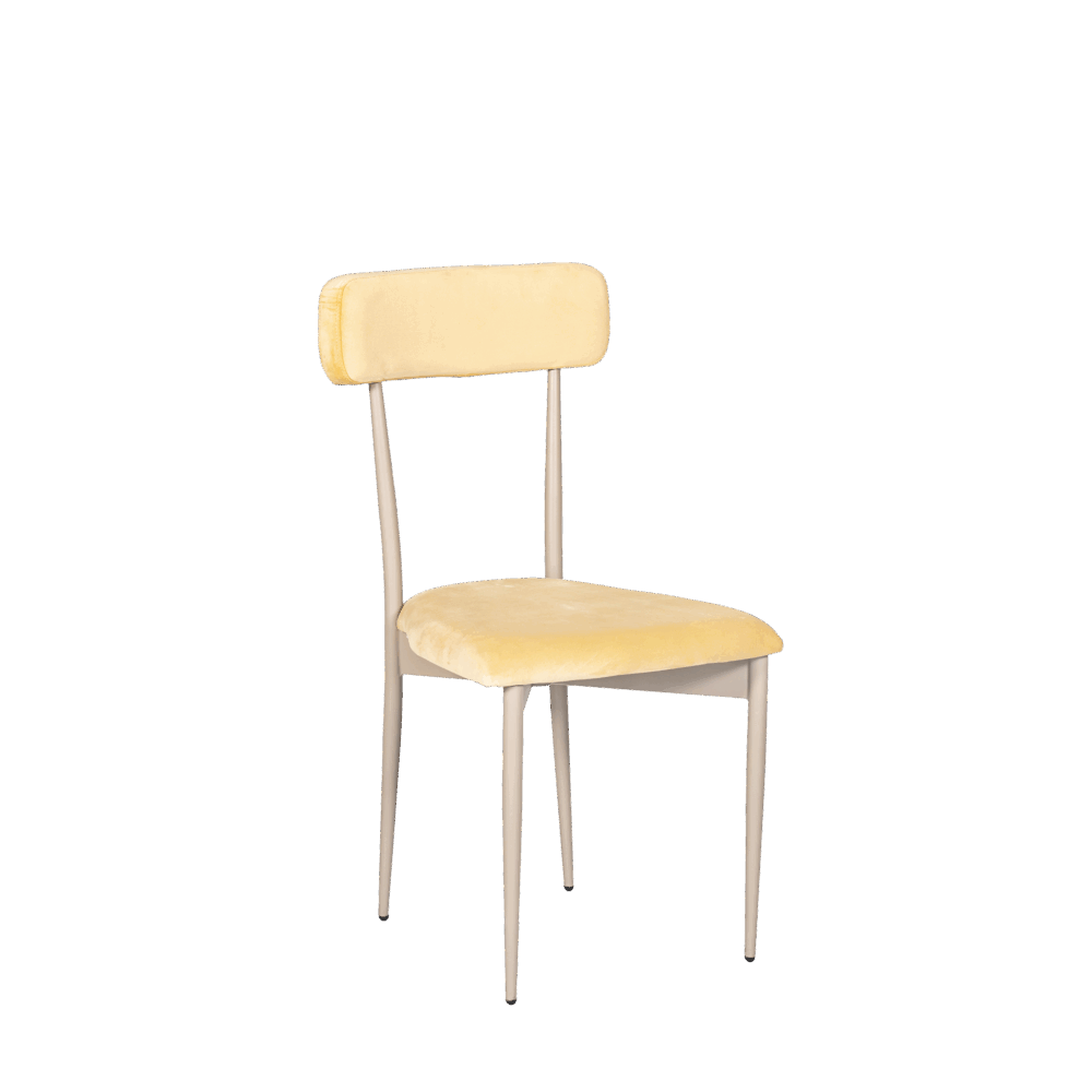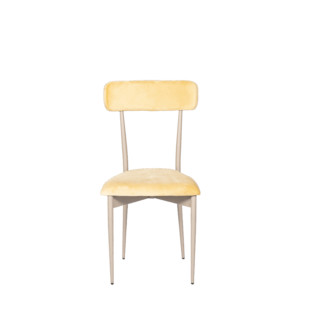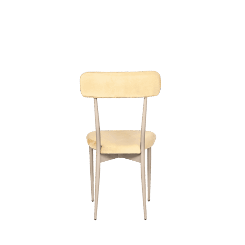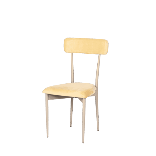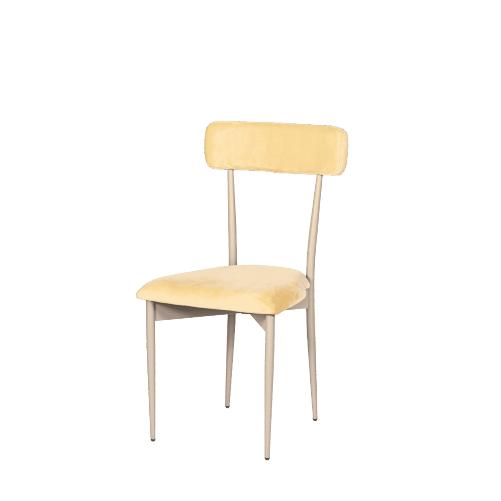Hayworth Dining Chair with Rectangular Back, Champagne Velvet Upholstery and Pewter Frame.
