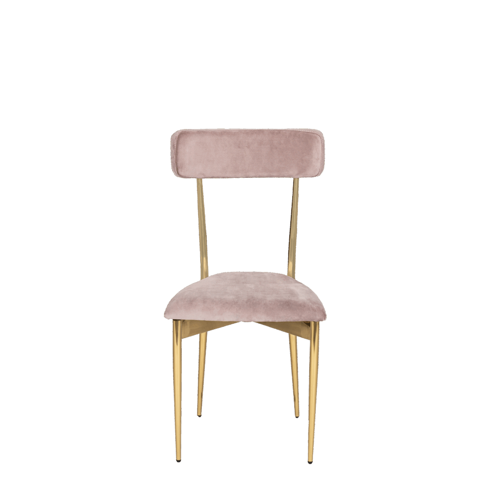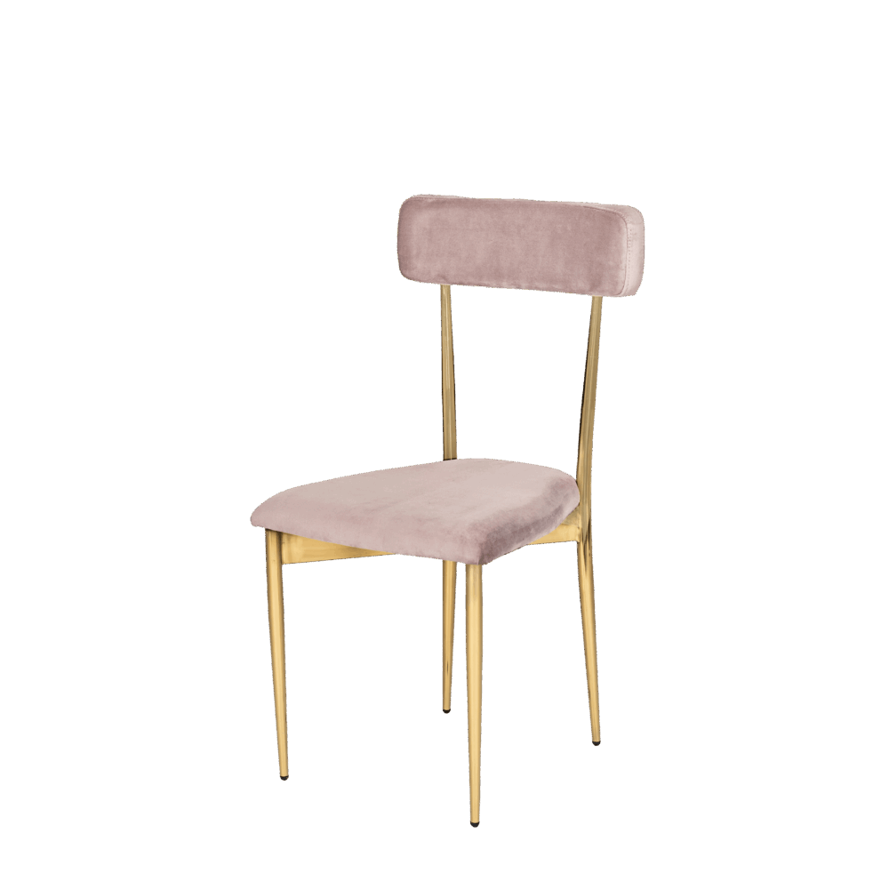Hayworth Dining Chair with Rectangular Back, Dusky Rose Velvet Upholstery and Gold Metallic Frame.
