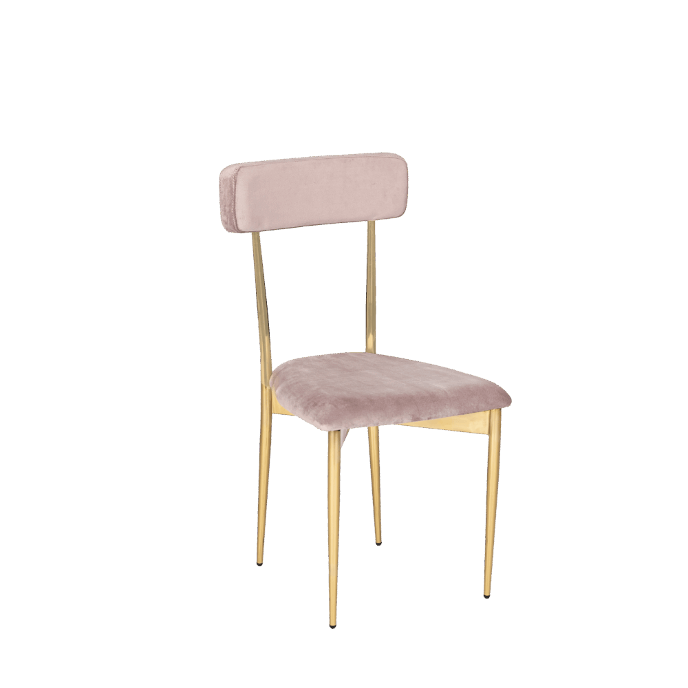 Hayworth Dining Chair, Dusky Rose Velvet and Gold Metallic Frame.
