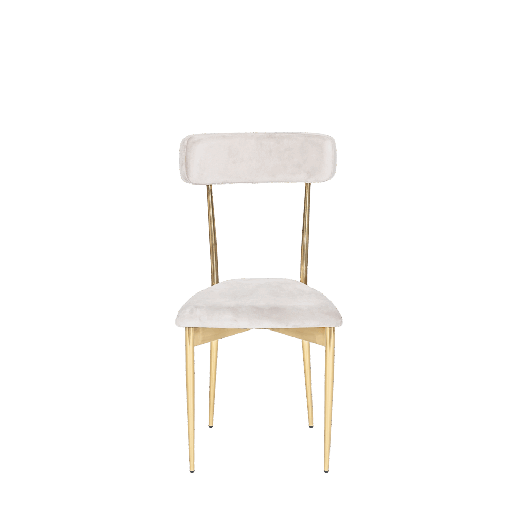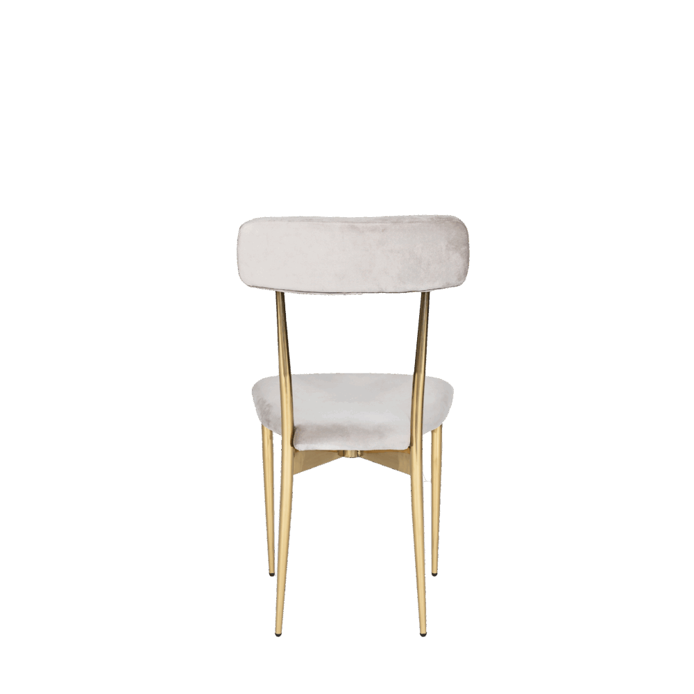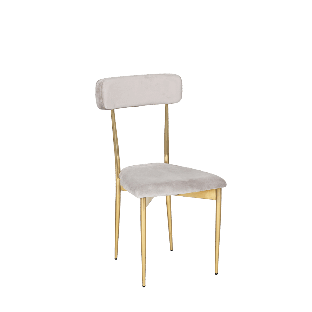 Hayworth Dining Chair, Grey Velvet and Gold Metallic Frame.