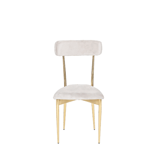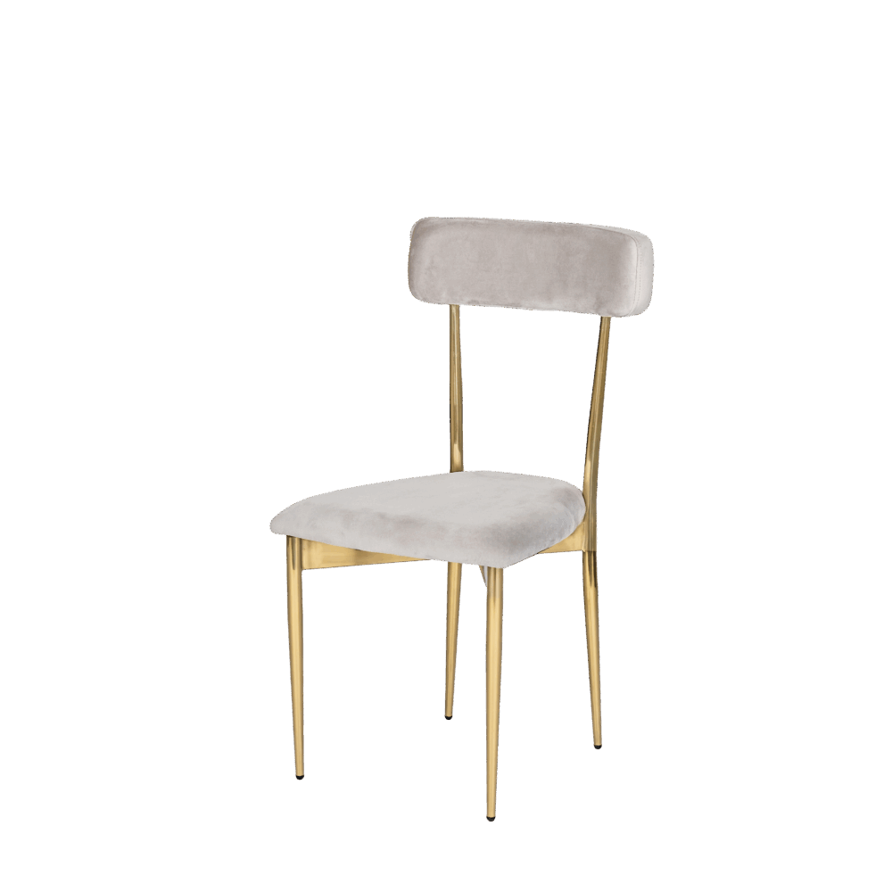 Hayworth Dining Chair with Rectangular Back, Grey Velvet Upholstery and Gold Metallic Frame.