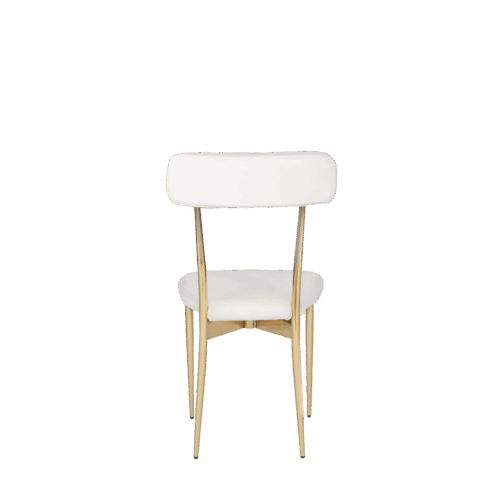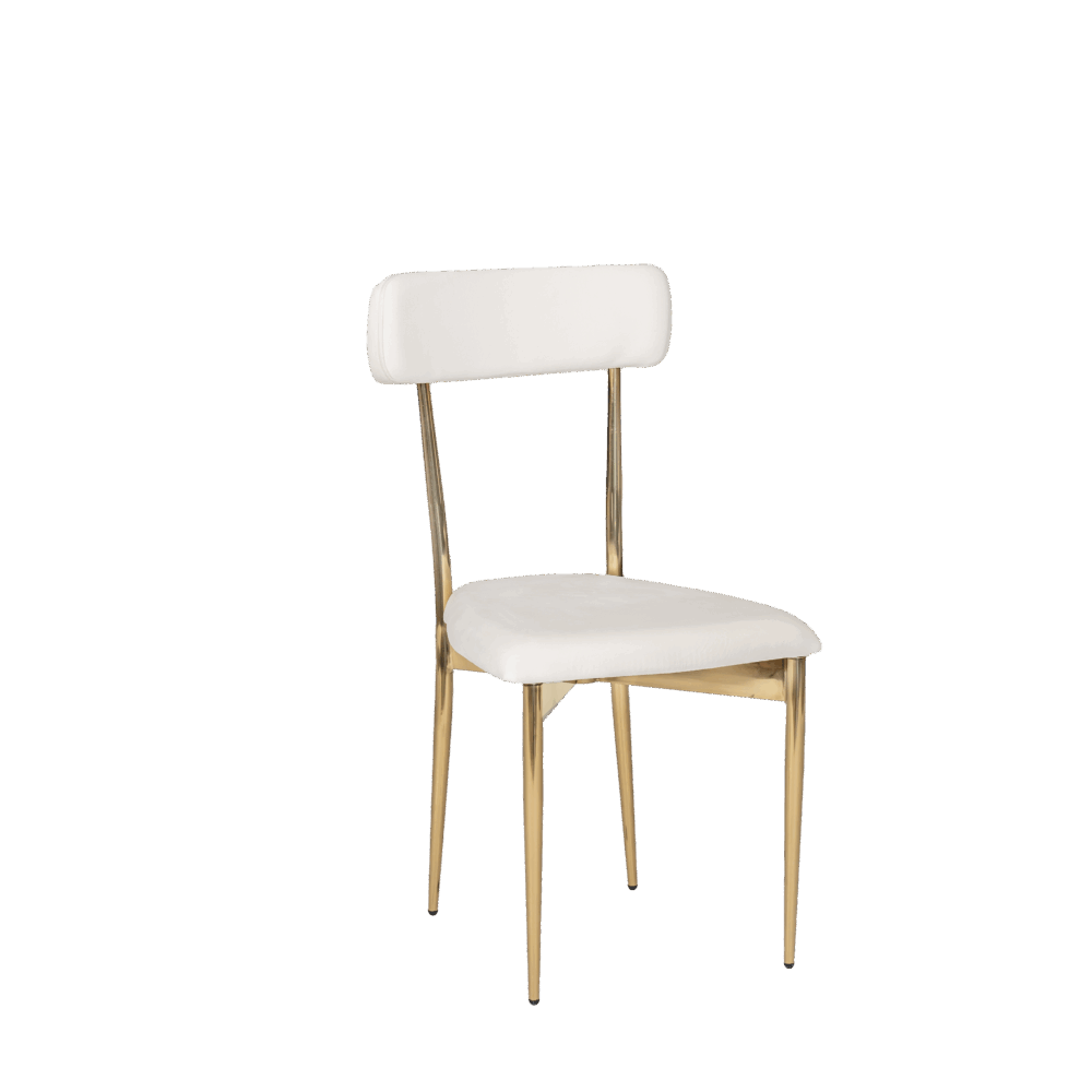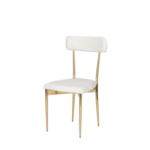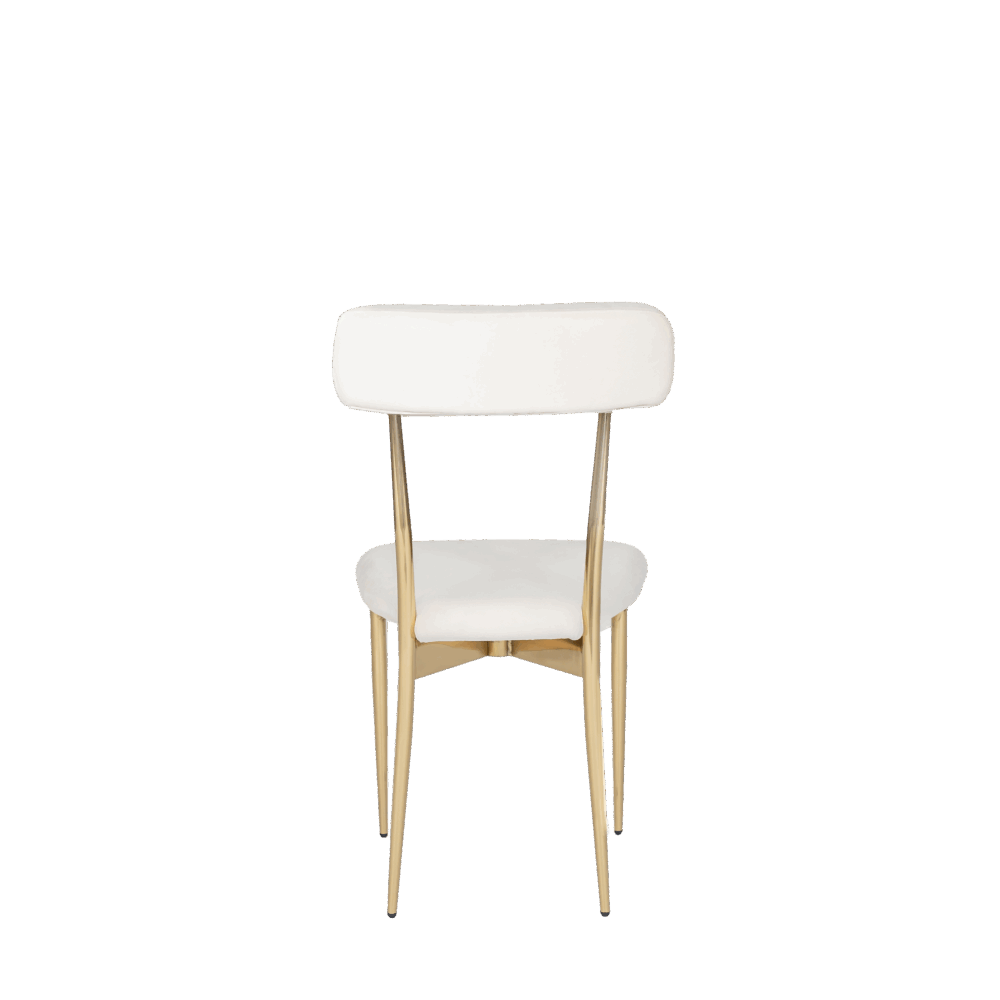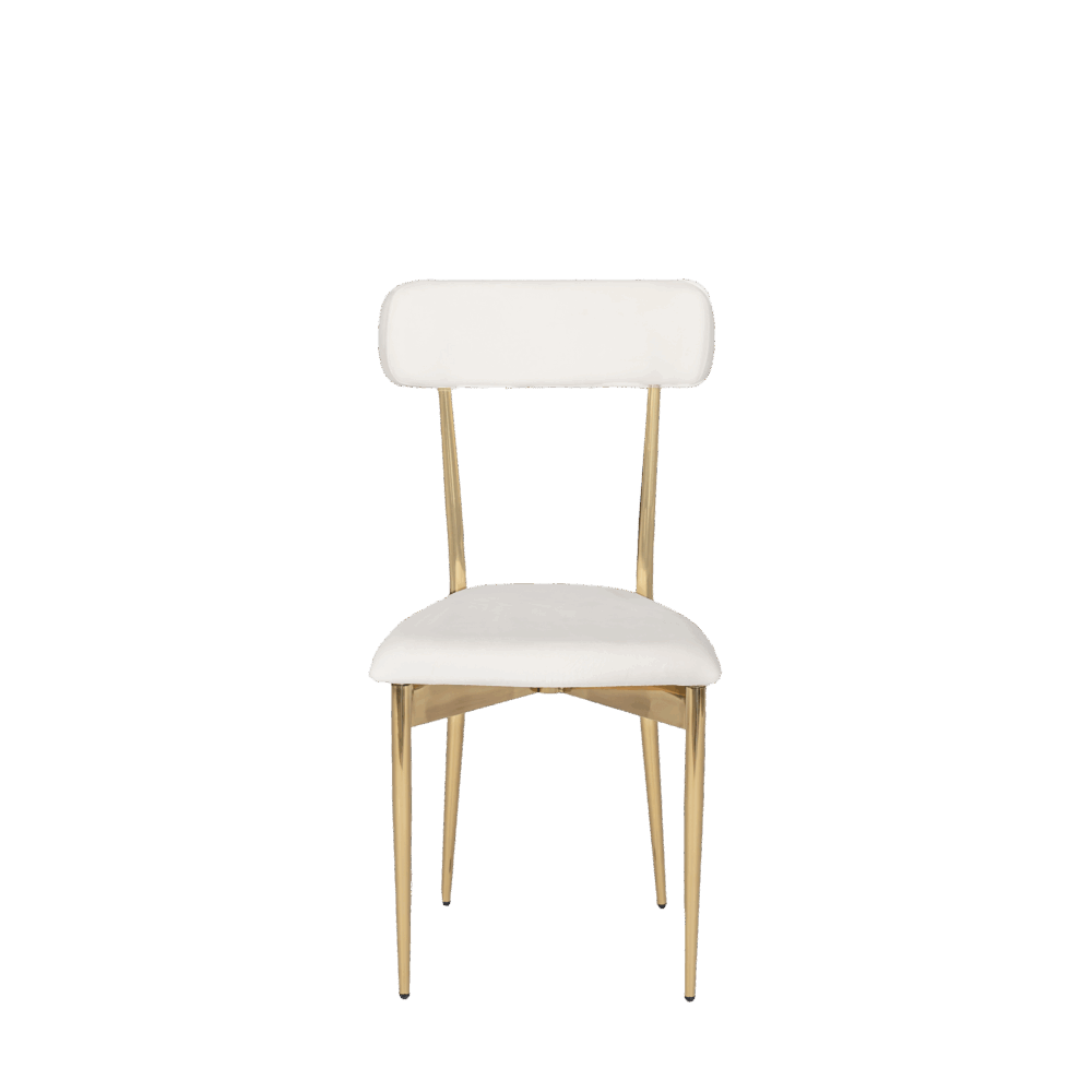Hayworth Dining Chair with Rectangular Back, White Velvet Upholstery and Gold Metallic Frame.