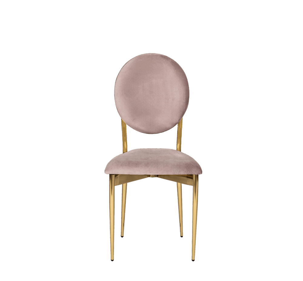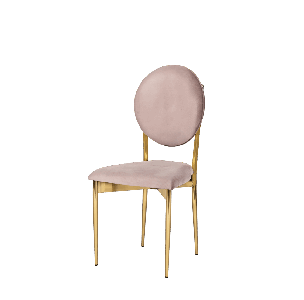 Hollywood Dining Chair, Dusky Rose Velvet and Gold Metallic Frame.