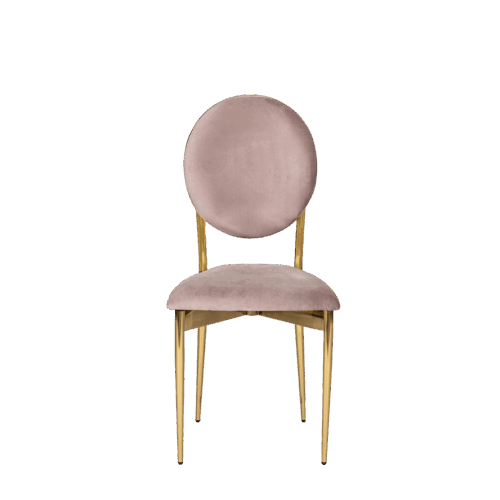 Hollywood Dining Chair with Medallion Back, Dusky Rose Velvet Upholstery and Gold Metallic Frame.